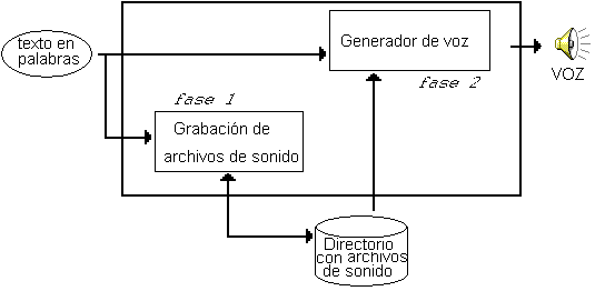 La operación del sistema se compone de dos fases: la grabación de los archivos de sonido y la generación de voz, como se muestra en la figura 3.1