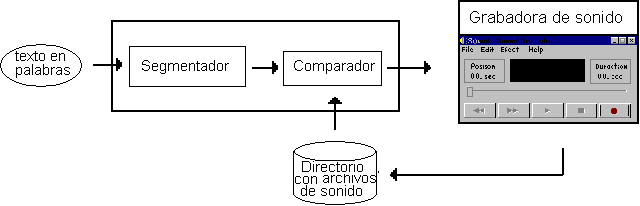 Una vez que se conocen los nombres de las sílabas del texto como archivos de sonido, son comparados por el programa con los nombres de los archivos de sonido existentes, para conocer las sílabas que están dentro del texto y de las cuales hace falta su archivo de sonido. Para cada uno de estos sonidos faltantes se deberá ejecutar el programa que permite grabar sonido en Ms-Windows y que es parte del sistema operativo; el archivo de voz que se graba, se guarda con el nombre del archivo correspondiente a cada sílaba.
